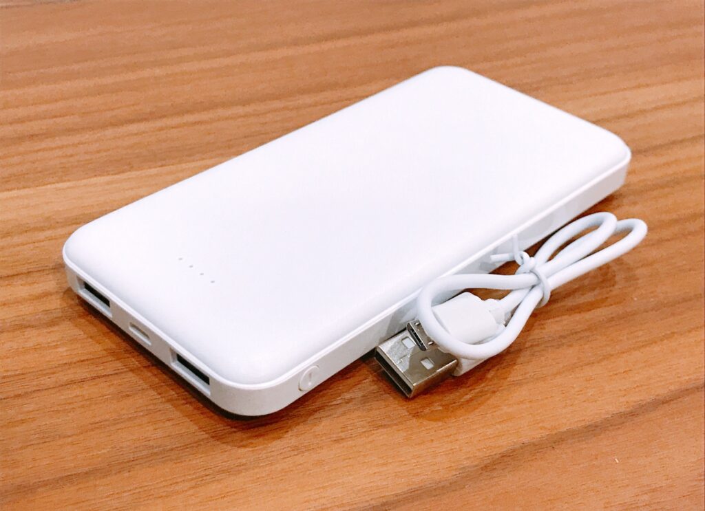 ですので、スマホを2〜3回程度充電できる10,000mAh(ミリアンペア)のモバイルバッテリーを持参するようにしています。